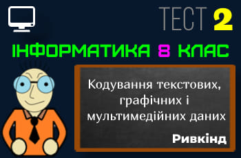 Онлайн тест на тему “Кодування текстових, графічних і мультимедійних даних” для 8 класу закладів загальної середньої освіти. Нова українська школа